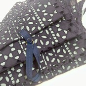 印象的な模様の紺レース生地に、落ち着いた水色の綿生地を合わせた二重張りにしました。