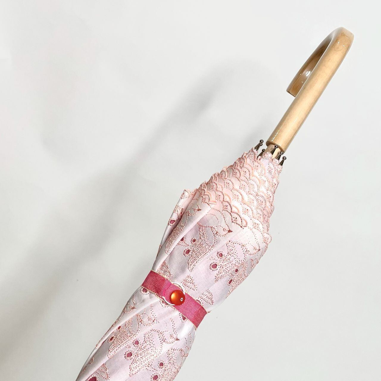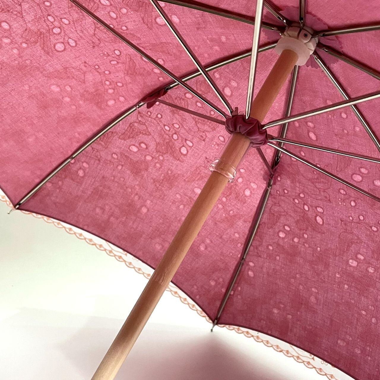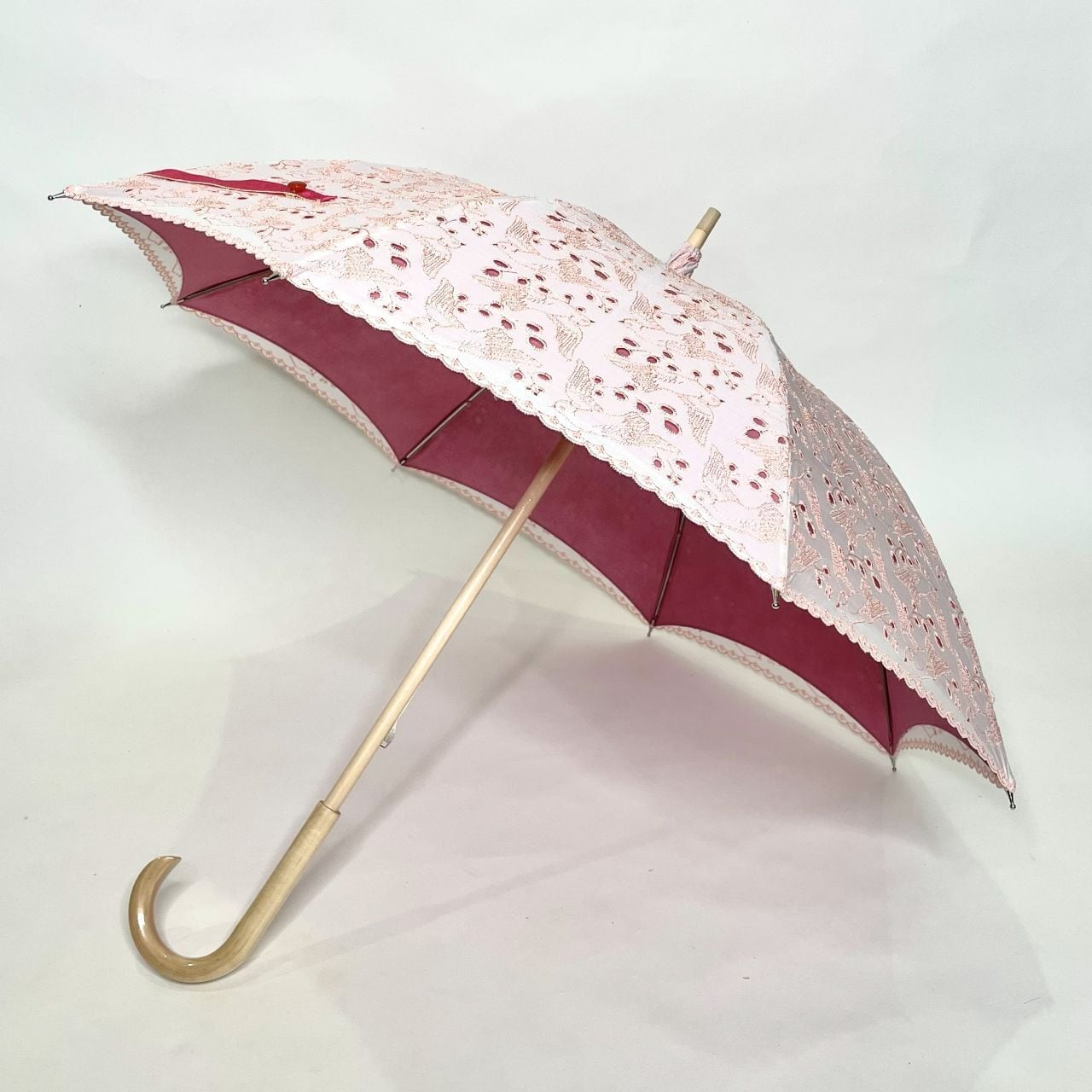 華やかすぎない落ち着いた色目のピンクの綿生地を合わせて大人可愛い二重張り日傘にしました。