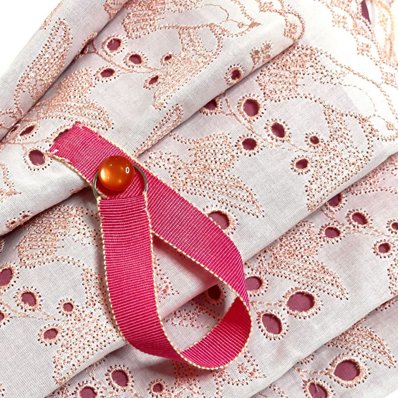 滑らかな薄手の綿ローン生地に光沢のある糸で刺繍したオレンジピンクの鳥柄は他にはない可愛さです。