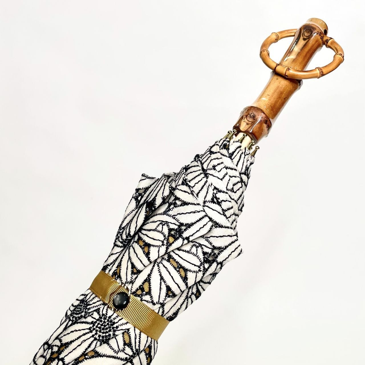 二重張り margueriteレース日傘 モノクロ×マスタード 43㎝