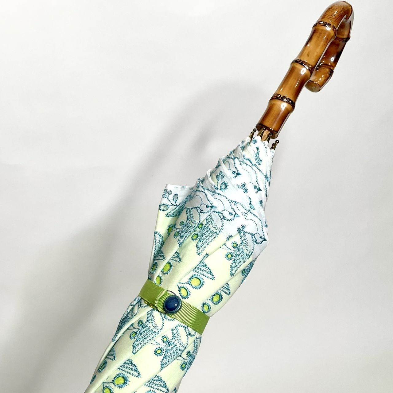 二重張り birdレース日傘 white エメラルド×ライム 47㎝