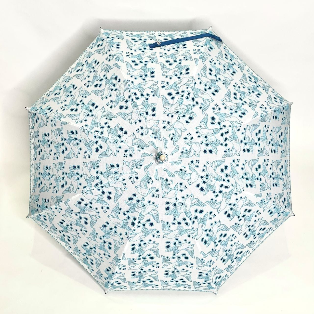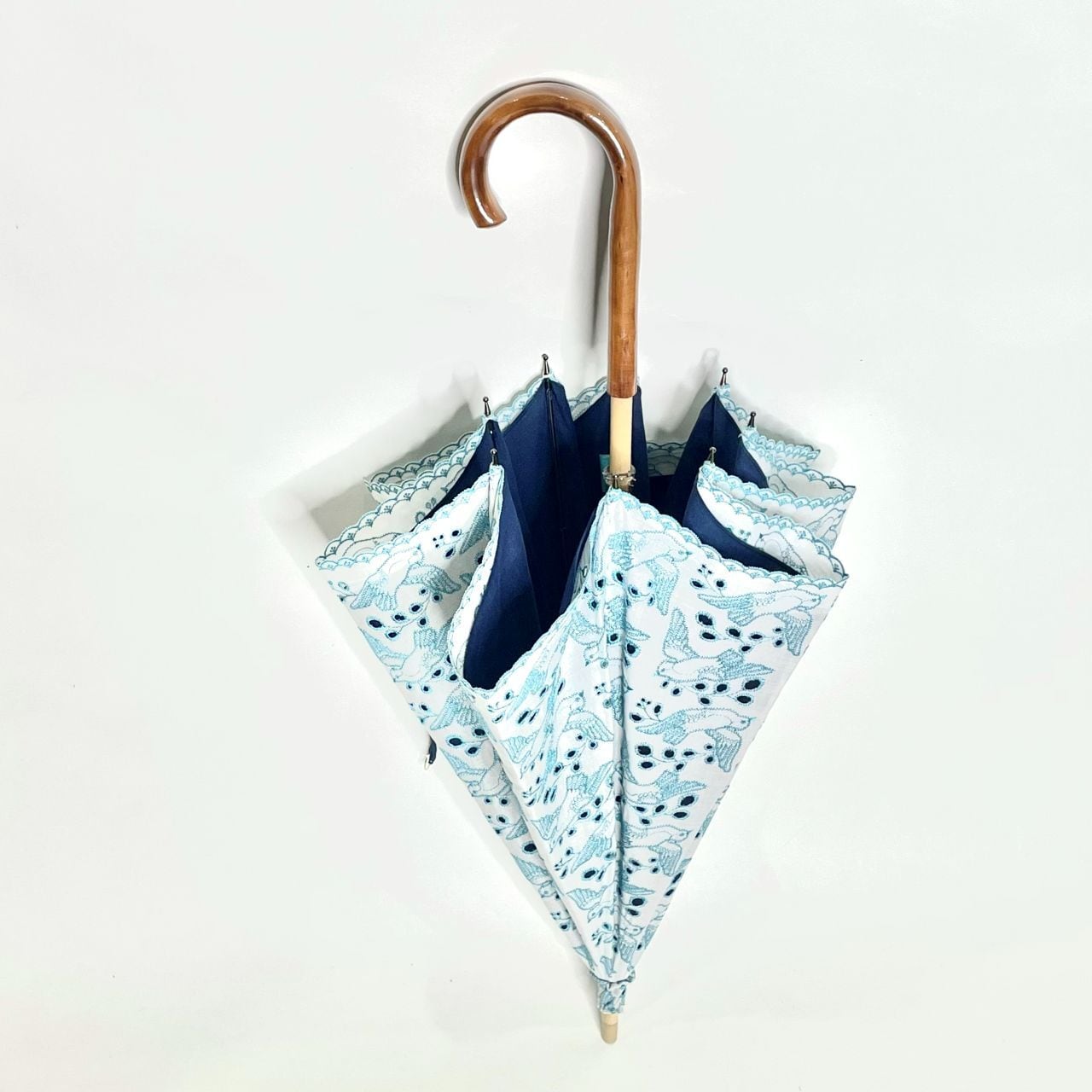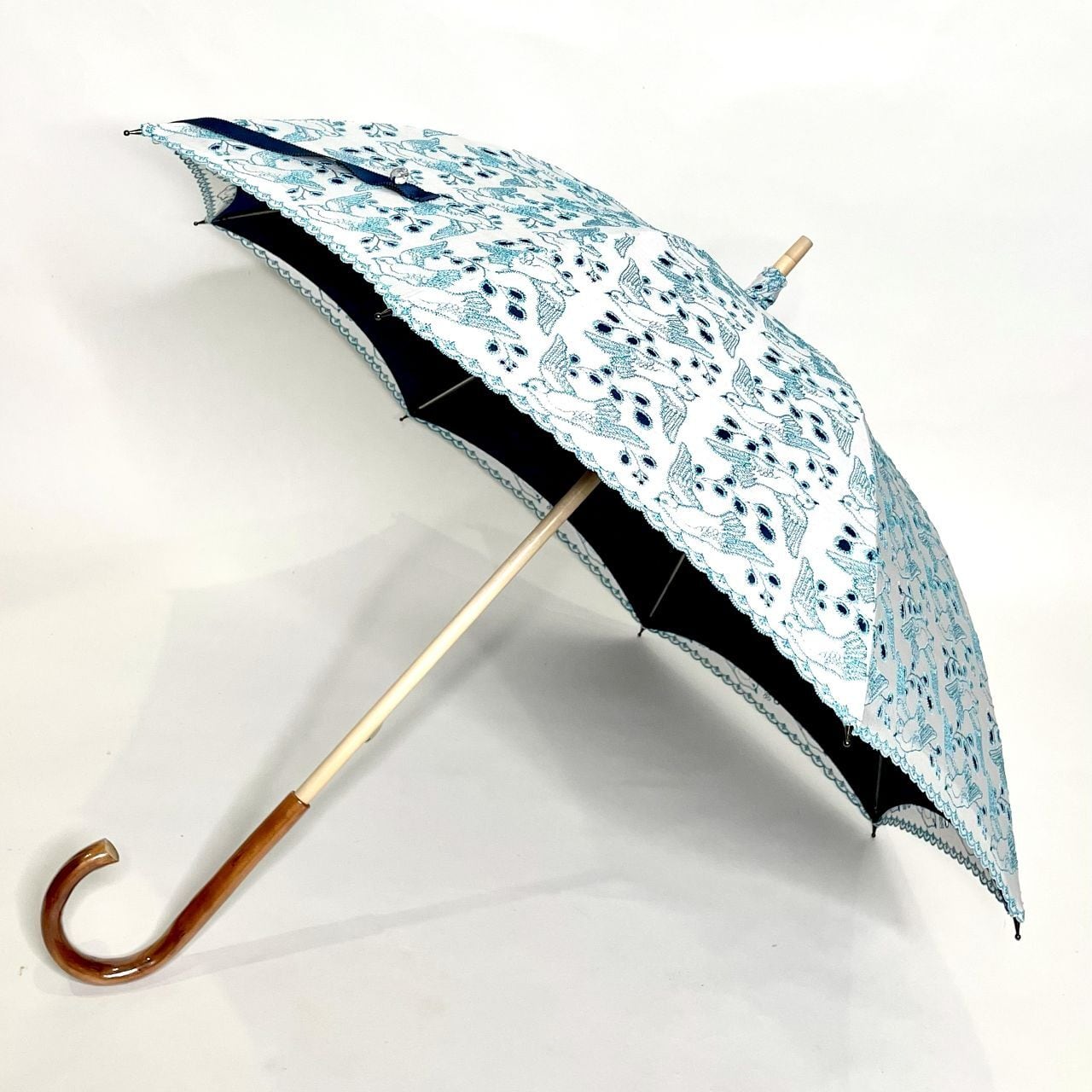 二重張り birdレース日傘 white エメラルド×ネイビー 43㎝