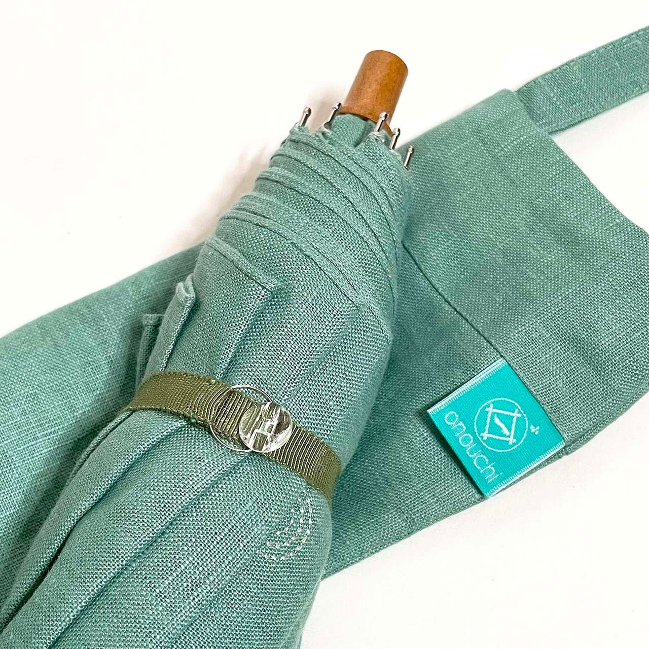 スモーキーなエメラルドグリーンに爽やかな白のスパンコールは、どんな雰囲気のお召し物にも合う素敵な傘になりました。
