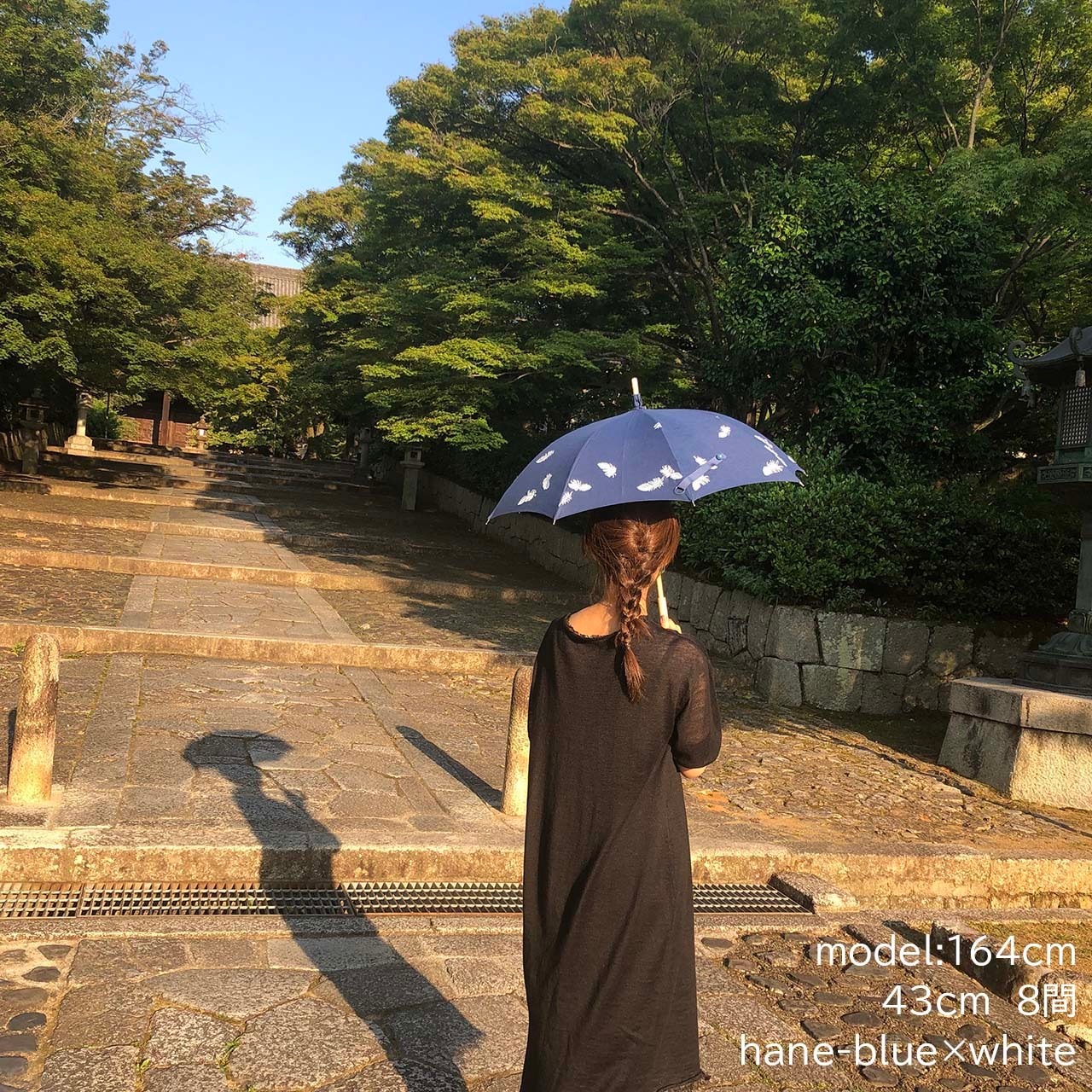 hane ふわふわ刺繍日傘 ブルー×白 47㎝折りたたみ